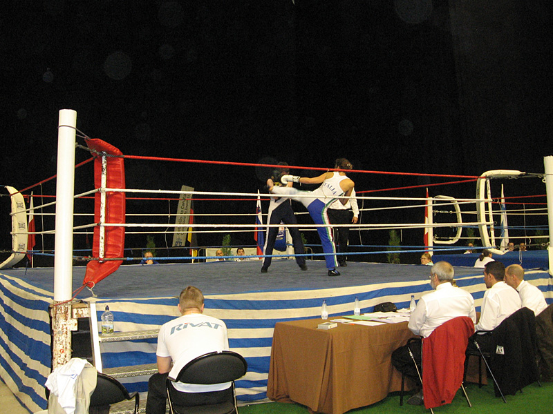 Varsinaiset kisat alkoivat perjantaina aamupäivällä kolmessa eri kehässä. Annukka aloitti urakkansa ottelulla italialaista Ravasia vastaan ja hävisi tuomariäänin 3-0. Ensimmäinen ottelu on aina vaikea ja ylimääräinen jännitys paistoi Annukan otteista.