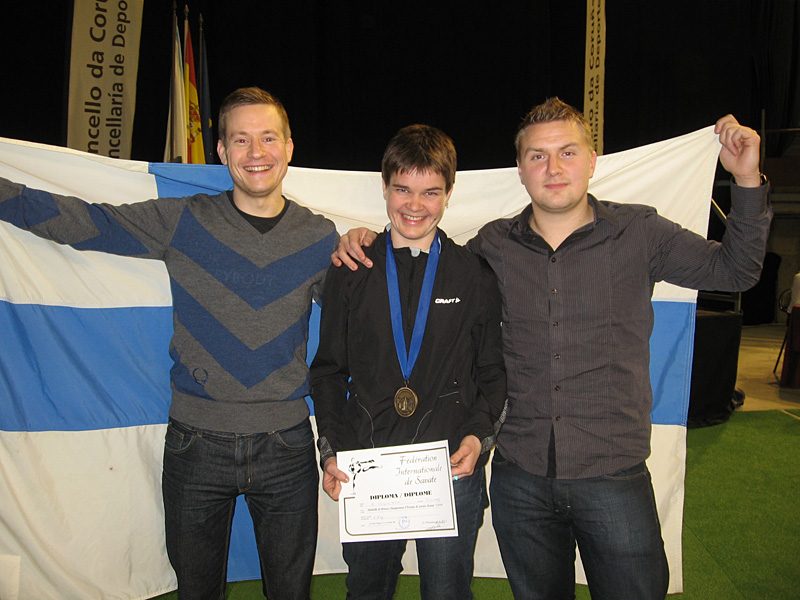 Hola! Savaten EM-kisat kamppailtiin tänä vuonna Espanjan La Corunassa 12.11.-14.11.2009. Kisat käytiin assaut-säännöin, eli voimankäyttö on näissä otteluissa rajoitettua, ja tällöin ottelijan tekniset ja taktiset ominaisuudet nousevat vahvemmin esille. Kisoihin osallistui noin satakunta kilpailijaa 14 eri maasta. Suomesta kisaamaan lähtivät Annukka Volotinen ja Pirkka Prami. Itse sain kunnian toimia Suomen joukkueen päävalmentajana.