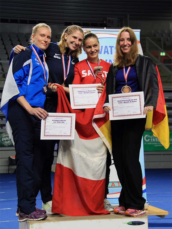 Riikka Holopaisen ensimmäiset kansainväliset kilpailut, joihin hän osallistui, olivat Helsinki Open -kisat 2013 ja saman vuoden kesällä olivat vuorossa vielä Bulgarian avoimet. ”Nyt on takana reilut 20 kansainvälistä mittelöä”, Riikka summaa. Parhaiksi saavutuksikseen hän nimeää EM-pronssin Roomassa 2014 ja MM-hopean Kroatiassa 2016.