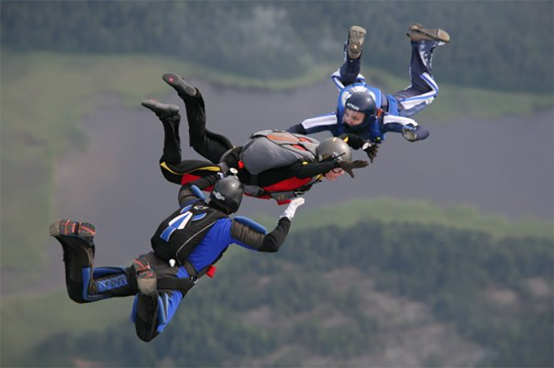 ”Tämän jälkeen on tullut koluttua myös tuulitunnelit Briteissä, Saksassa ja Tšekeissä. Floridassakin käytiin hyppäämässä. Suurin osa hypyistä tehdään neljästä kilometristä”, Riikka kertoo. Laskuvarjohyppykurssilta löytyi myös seurustelusuhde, lääkärinä vatsakirurgiaan tulevaisuudessa erikoistuva Markku.