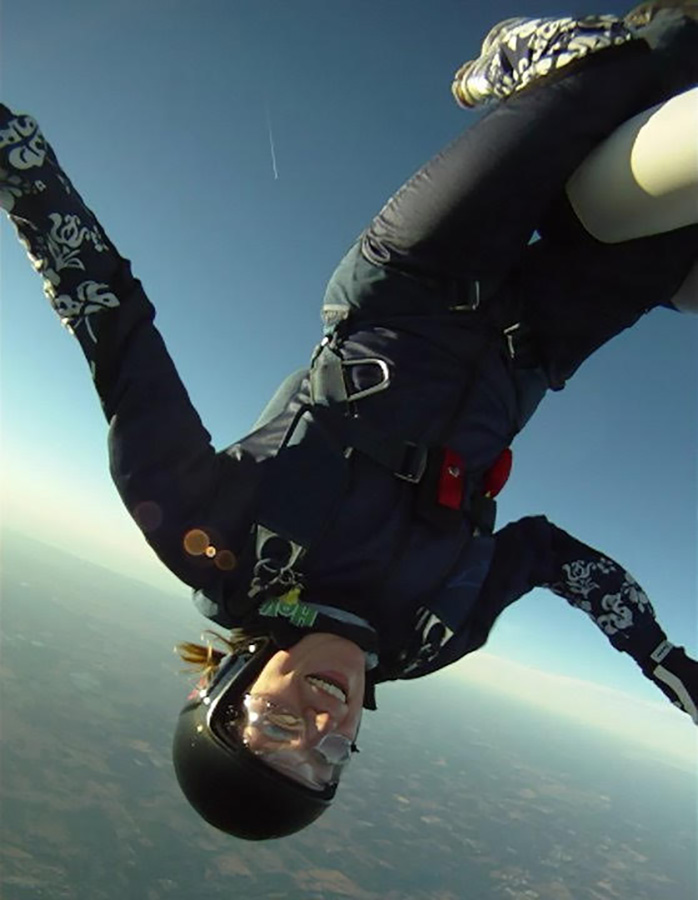 ”Savaten aloittaminen pelotti, mutta neljästä kilometristä hyppääminen ei”, fysioterapeutti, terveystieteiden maisteri Riikka Holopainen aloittaa Harjoittelu osana elämää -haastattelunsa. Elettiin vuotta 2008, jolloin Riikka tutustui ensimmäisellä tandemhypyllään uuteen laskuvarjomaailmaan eikä tämän jälkeen kulunut kuin viikko, kun hän huomasi olevansa kurssilla, jossa opiskeltiin laskuvarjohyppäämisen saloja.
