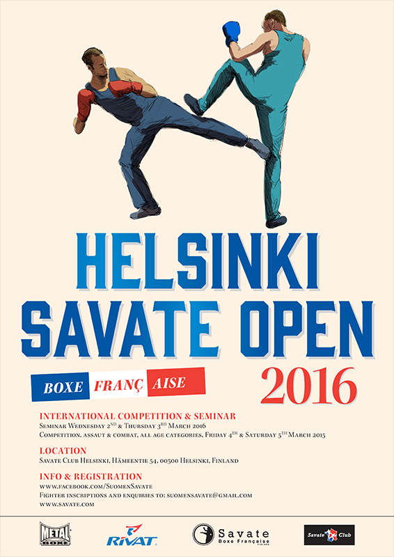 Lisätietoja osoitteesta suomensavate@gmail.com sekä Facebookin Helsinki Savate Open 2016 -sivulta.